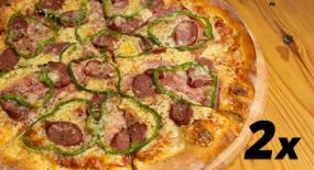 Με τυρί, σάλτσα, ζαμπόν, μπέικον, μπύρας, πεπερόνε, λουκάνικο, μανιτάρια & πιπεριά