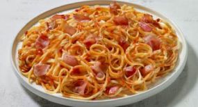 Σαλάτα με ζυμαρικά fusilli, φιλετάκια κοτόπουλο, κεφαλοτύρι, μπέικον, μαϊντανός, μαγιονέζα & μερίδα αλάτι