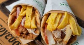 (Πίτα σουβλάκι κοτόπουλο με τα υλικά της επιλογής σας)